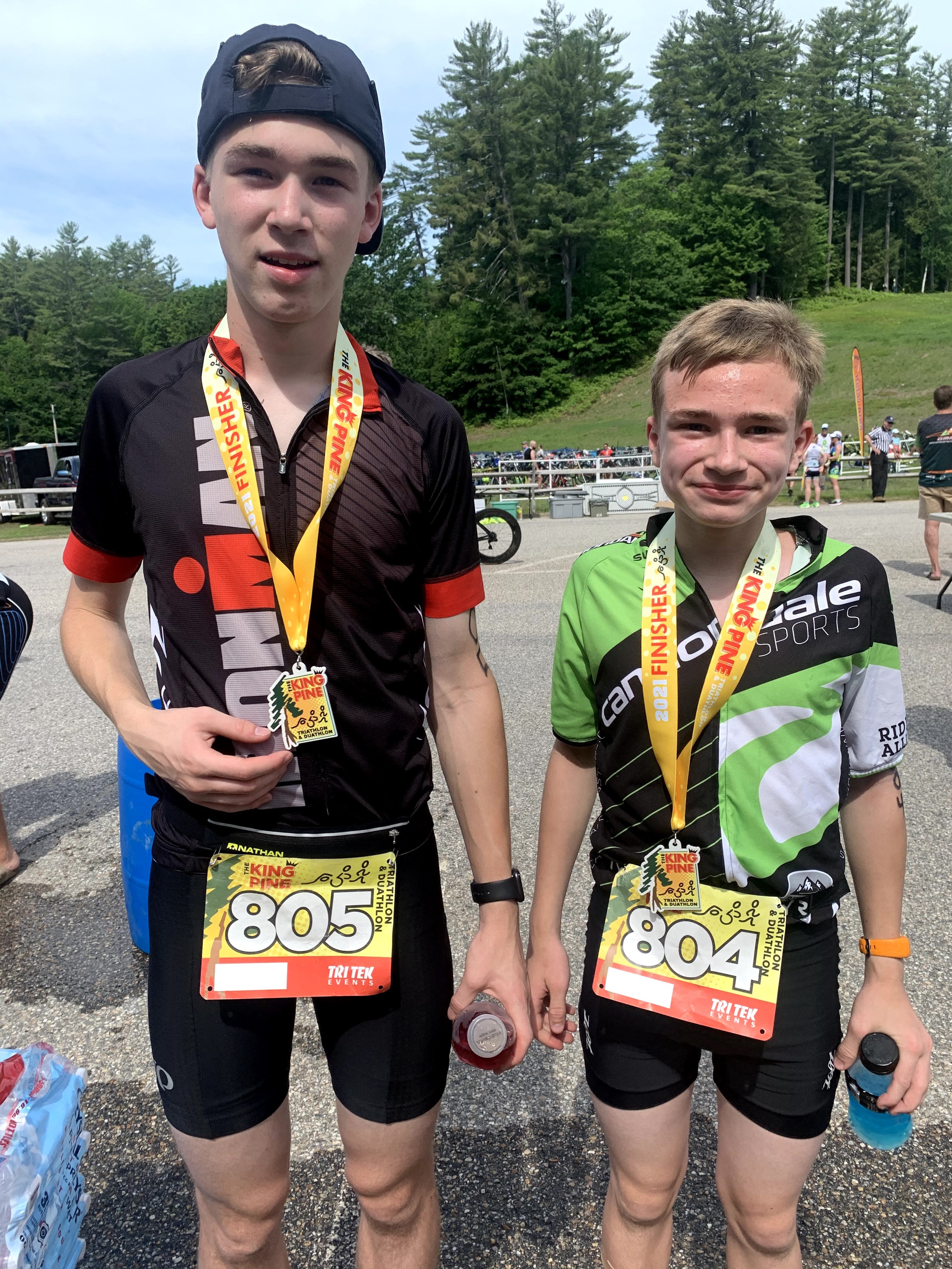 School ended June, 4 2021. We celebrated Brody’s eighth grade graduation with friends at one of our favorite local restaurants, Ellie’s Farmhouse. After a delicious brunch, it was time to head home to pack the gear and rack the bikes for the King Pine Tri/ Duathlon. Friday night, we all stayed in North Conway, NH to avoid a long early morning drive. Although Mom and Dad wanted Gavin and Brody to take it easy and rest their bodies, the hotel’s indoor water park was too exciting to pass up. The hotel provided a bagged breakfast, but neither Gavin nor Brody were very hungry. While they checked in and set up their transition area, Mom and Dad volunteered to help and were placed on drink chilling duty. Mom and Dad may not race, but they are eager to help where they can while supporting the boys in their races. Chase helps by carrying bags and assisting where he can too! Although this was Brody’s second adult duathlon, this was his first mountain course. He raced hard and finished strong! Seventeen duathletes competed in this race. Gavin placed second overall and in the men’s division. Brody placed twelfth overall and sixth in the men’s division. Gavin had the opportunity to cycle alongside a racer who is a former U. S. senator and former U. S. ambassador. He kindly encouraged Gavin in his racing and suggested that if Gavin had a better bike, he’d be a rocket. It wasn’t the first time Gavin was told it was time to think upgrading. Our favorite bike shop, Philbricks, has amazing staff! In the spring of 2021, he was told to start thinking about an upgrade because of his growth. These comments settled in Gavin’s mind, and he began researching his best options for tri bikes. He purchased his current bike, an acid-green Cannondale CAAD Optimo, in the summer of 2018. It has served him well, but we all know it’s time for him to kick it up another notch!