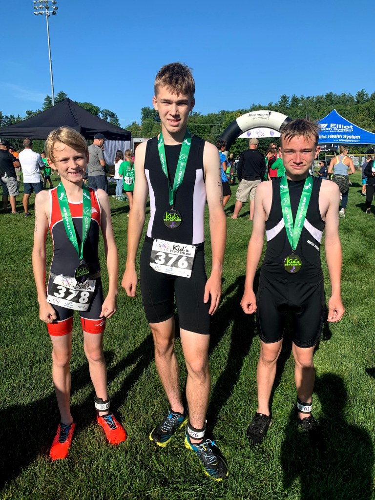 The Friends of Aine Kid’s Try-athlon is a special race to us in many ways. The boys began competing in this race in its second year. The course distances are shorter which make it a relaxing race. We value this race because it honors a young girl, Aine, who passed away. Her parents recognized that their other daughter needed grieving support, but resources were limited. This race is a fundraiser to provide support for grieving children. Each year it seems to grow; this year the total number of participants was 245! We appreciate that children and their emotions are valued. Every year we are there, Mom gets tears in her eyes when Aine is remembered. Additionally, this was the only race Mom and Dad felt the boys could compete in during the summers of 2017 and 2018. Due to Mom’s surgeries (and the boys’ young ages), training opportunities were massively curtailed. However, the short distances of this race enabled Gavin, Brody, and Chase to still compete comfortably. Since the age maximum is fifteen, Gavin felt it was extremely important to compete in this race one last time in 2021. Mom watched the boys complete their fifty yard swim while Dad waited on the bike and run course to cheer them on. Following the swim, Mom made her way to the finish line to give the boys her usual finish line cheer (which they find humorous to repeatedly play in videos!). Each crossed the finish line with a strong sprint. This day provided a lot of excitement for us! We enjoyed a great conversation with a 2024 Olympic-hopeful triathlete who attended the race. In Gavin’s final year of competition, he destroyed the course record– beating it by 1:36! Gavin obviously came in first across all divisions. Brody placed 2/10 in his age division, 9/55 in the male category, and 10/81 in the 11-15 year old category. Chase placed 12/17 in his age division, 31/55 in the male category, and 41/81 in the 11-15 year old category. As always, Mom and Dad are proud of their excellent performances!