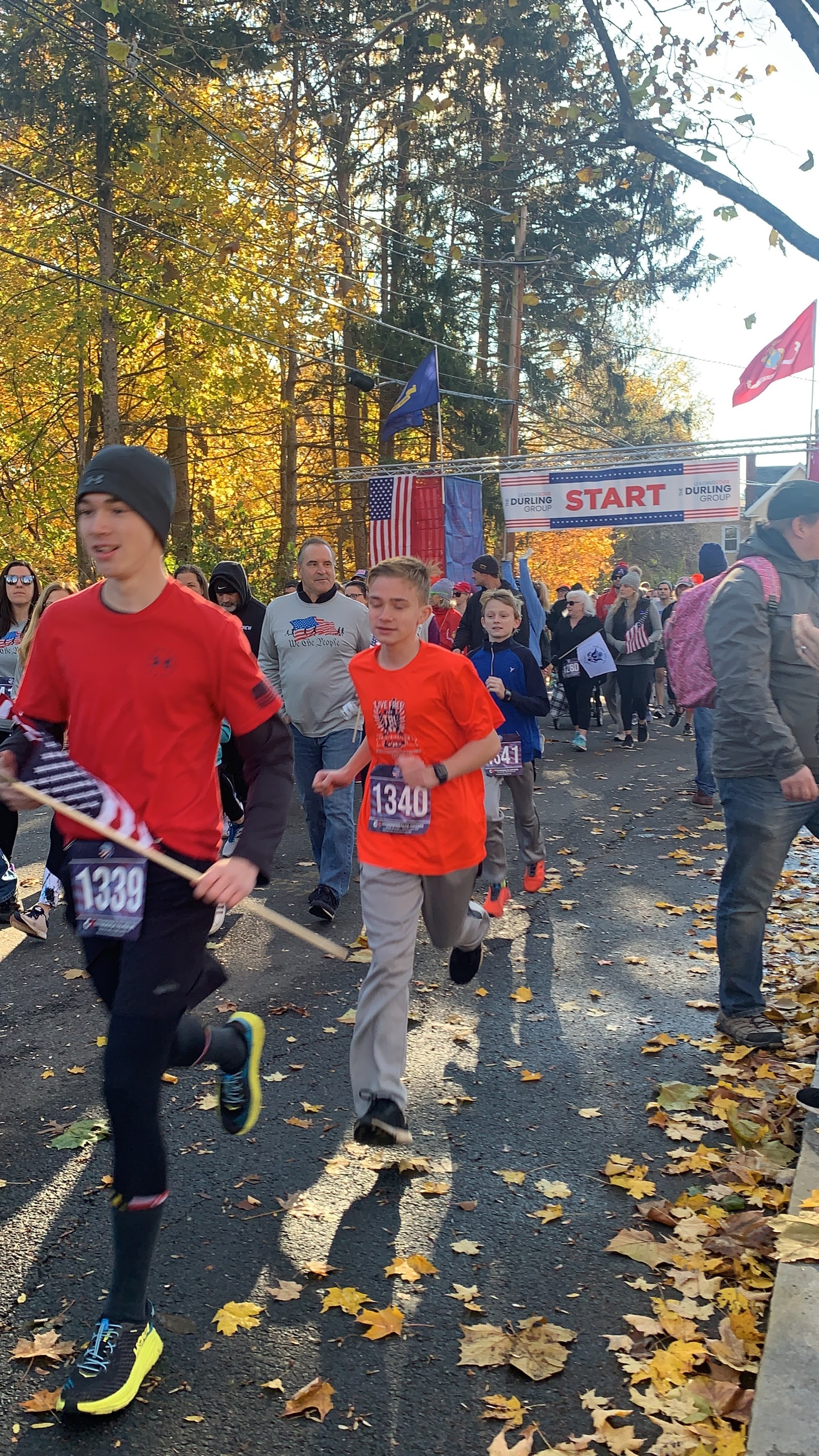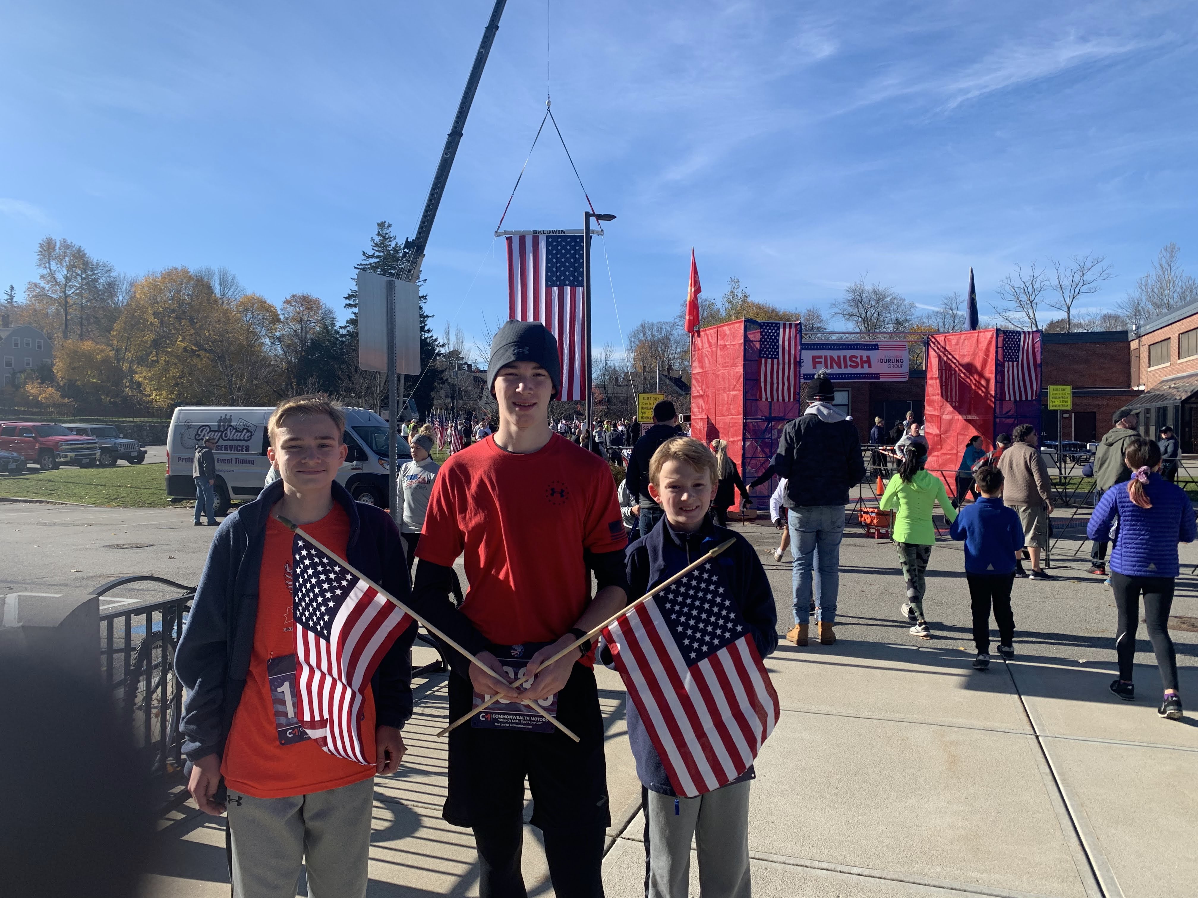 Triathlons and duathlons for 2021 are done! However, we are excited for the boys to compete in a duathlon in February located in North Carolina. Snowy New England winters are not conducive to run training on the roads. Indoor equipment is a good substitute, but we wondered if there might be a better way. Dad, the brains and manager of our team, proposed that the boys compete in some 5k races throughout the cooler months to help keep them in shape. He found a 5K with a fantastic cause! Andover’s Run for the Troops 5k provides funding for veterans who need custom-built homes to meet their needs. As we approached the park, majestic flags lining the perimeter and sidewalk welcomed racers and guests. The brisk November wind caused the flags to flutter and flap while the sun illuminated the park. As racers entered the meeting area, volunteers greeted racers and offered flags. Announcements began with a recognition of present veterans, a tribute to each military branch, and a vibrant singing of the “Star Spangled Banner.” Over one thousand racers competed. Although Gavin, Brody, and Chase were placed near the back of the last group, Gavin managed to weave his way through other runners, walkers, strollers, and vehicles. This proved effective for him in the end since he placed 17 out of 1043! Additionally he placed third in his male age category (ages 15-19). Brody and Chase were in the same category, males fourteen and under. In their age category, Brody placed ninth; Chase placed fourteenth. Overall Brody placed 108, and Chase placed 280. We appreciated the cause of this race and the vast gratitude displayed for our veterans. The boys felt the race was easy (It was compared to what they are used to!), but extra training coupled with an important cause seemed like a win in our book!