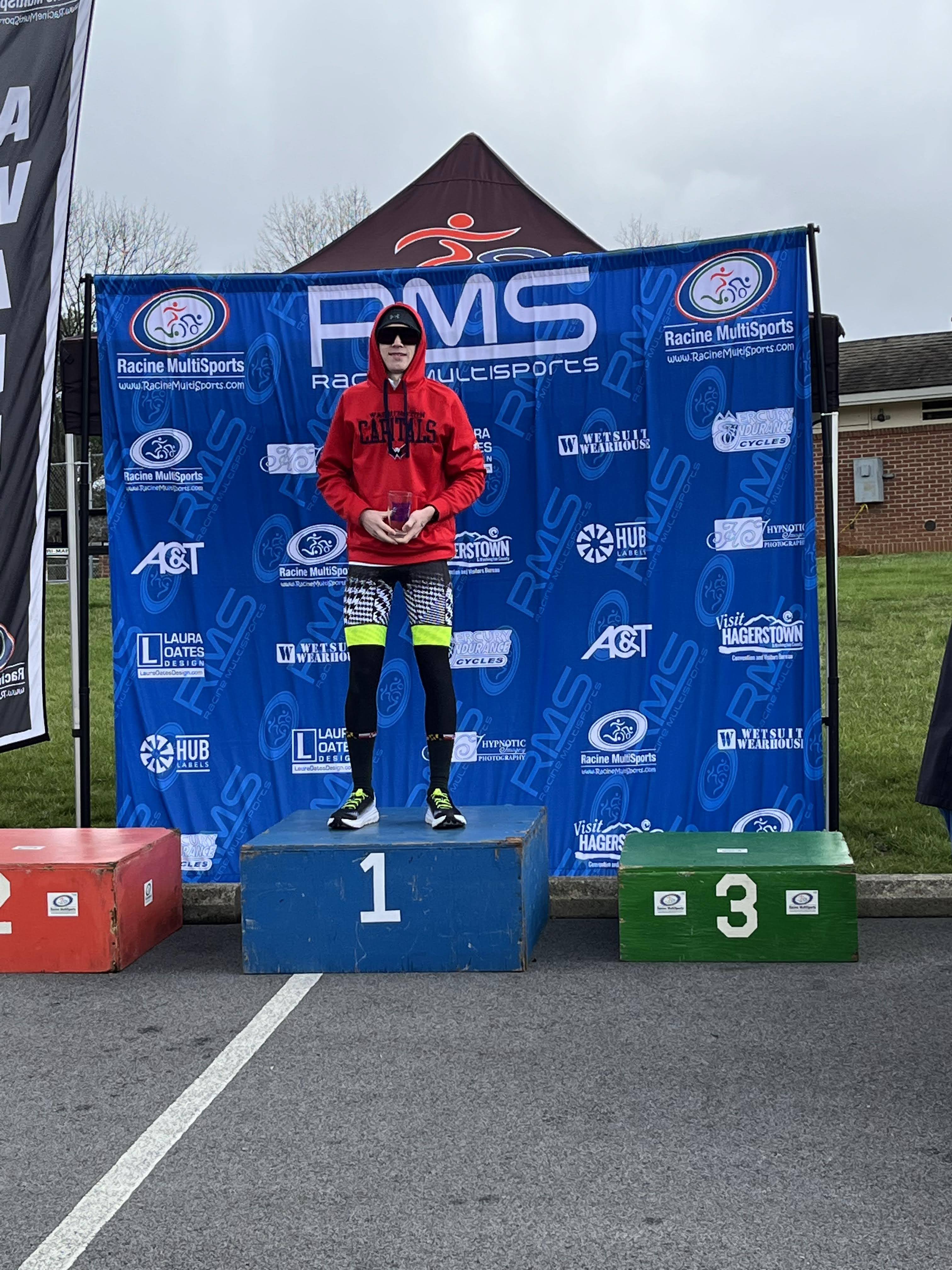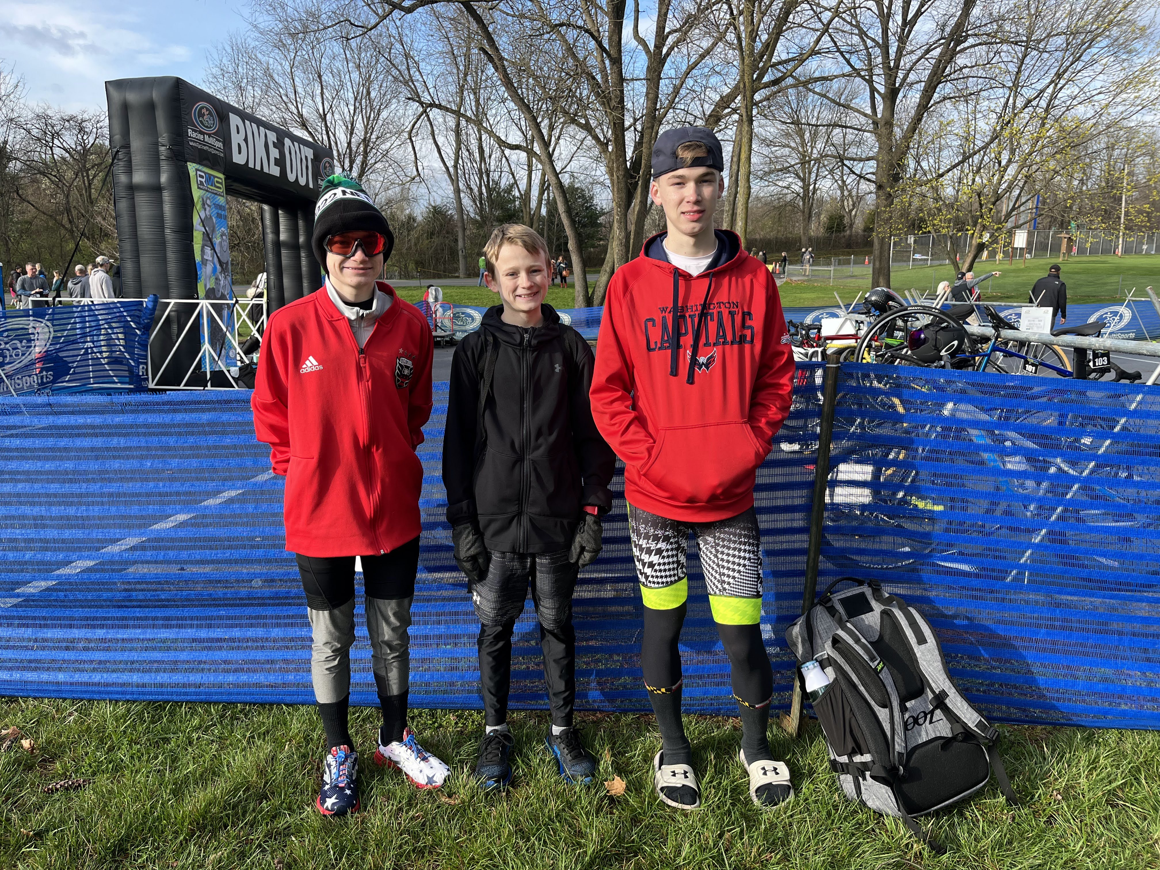 Our second race of the season required a road trip from MA to Hagerstown, MD. Gavin and Brody competed in the sprint distance duathlon; Chase competed in the 5K. All boys had a strong start. Gavin and Brody zipped through both transitions and sprinted hard across the finish line. Both of Gavin’s run splits were under 7 minutes, and he averaged a little over 20 mph on the bike. This earned him 14th place (out of 95) overall, 14th place out of 66 men, and 1st place in his age category. Brody placed 72nd overall (he is working on adapting to racing in colder weather) and 1st in his age category. Chase had a strong run with an 8:56 pace. He placed 6th out of 12 males and first in his age category. With the commitment and determination the boys show, we know they will continue to improve their skills, garner lessons from each race, and enjoy the thrill of racing! As a family, we enjoy traveling and experiencing new race venues. On the way home, we ventured to Hershey, PA to enjoy breakfast at one of Mom’s favorite restaurants (First Watch). No trip to Hershey would be complete without a stop at Chocolate World! After a great weekend, we ended on a sweet note!