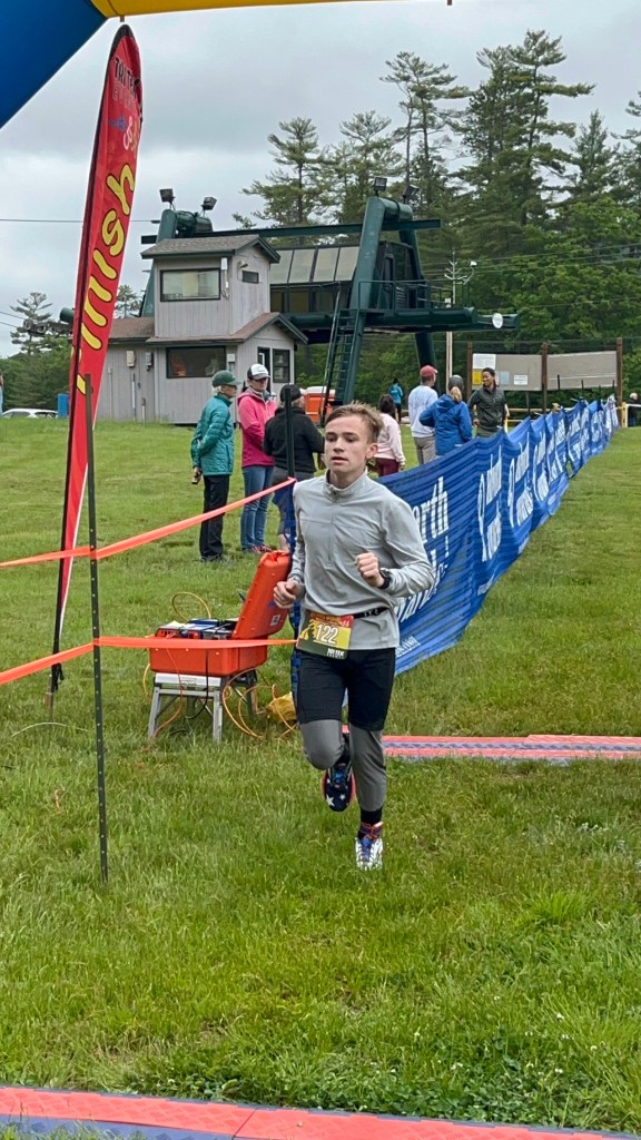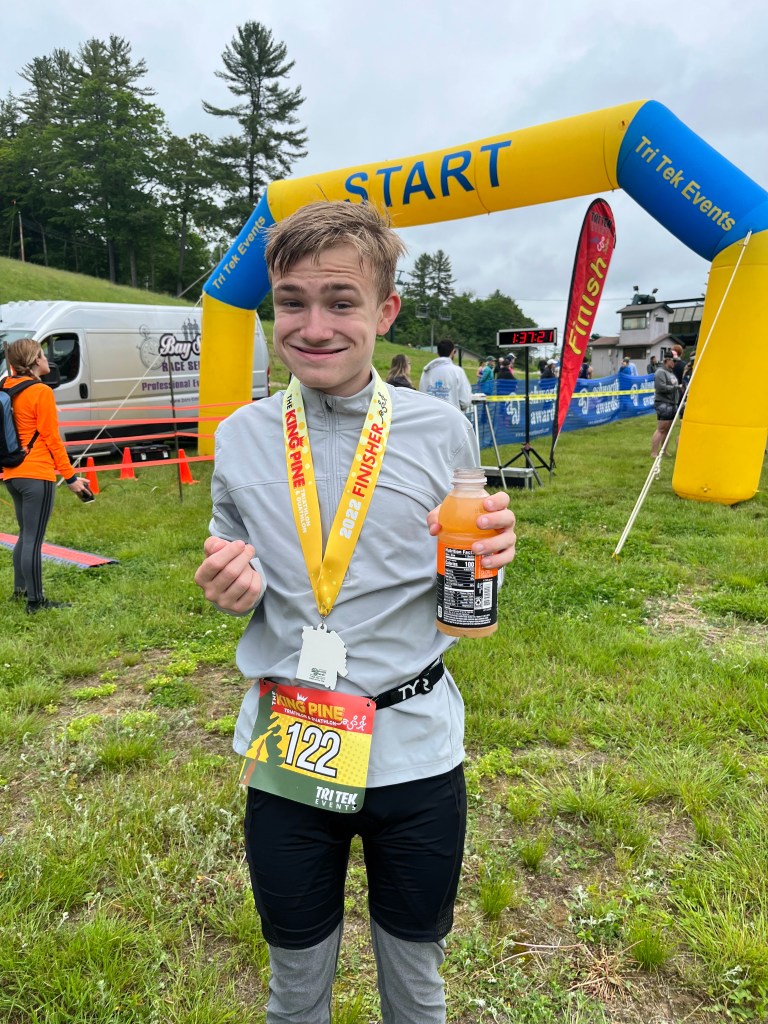 Brody was solid on his first run which kept him in the middle of the duathlete pack. Heading out on the bike course is a little tricky at this race. Hosted at a ski resort, the course weaves throughout mountain roads. The first hill looks small; but since it immediately follows the bike mounting line, it presents some challenges. Athletes have to be in the right gear to climb the hill, get their shoes on or click cleats in, and activate their watches (optional, but a necessity for some). Congestion of racers also complicates this scenario. Brody was one of the athletes who struggled to get his cleats fastened to his pedals; but once he did, he attacked the bike course. He had a great ride, a steady second run, and a strong sprint across the finish line. Brody placed eleventh overall out of twenty-one. Not only did he improve his finish time from last year by about ten minutes, but his performance proved impressive since he was the youngest racer.