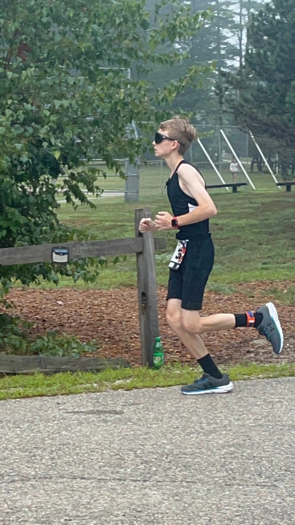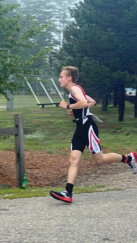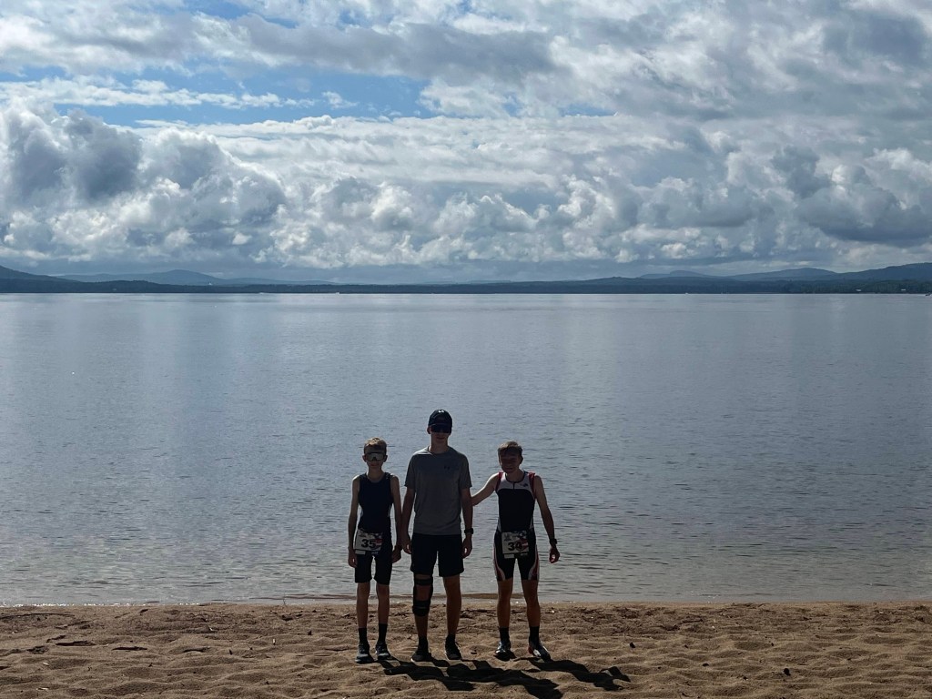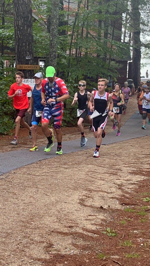 Live Free and Tri is one of our favorite races! The course is set in scenic Freedom, NH on Ossipee Lake which provides gorgeous mountain vistas. Brody and Chase competed in the sprint duathlon which consisted of a 2 mile run, a 10.83 mile bike, and a 3.1 mile run. Volunteering on the bike course, Mom and Dad were able to cheer for Brody and Chase as they approached the end of their bike ride. Gavin positioned himself on the course to take pics of Brody and Chase while biking and running. Fifteen athletes competed in this du. Brody placed third overall; Chase placed seventh. Managing speed and power on this mountainous course affords Brody and Chase opportunities to hone their racing skills. Additionally, the whole family enjoys the growing camaraderie among other athletes. Regular encouragement and friendly competition provide another beneficial aspect of racing!