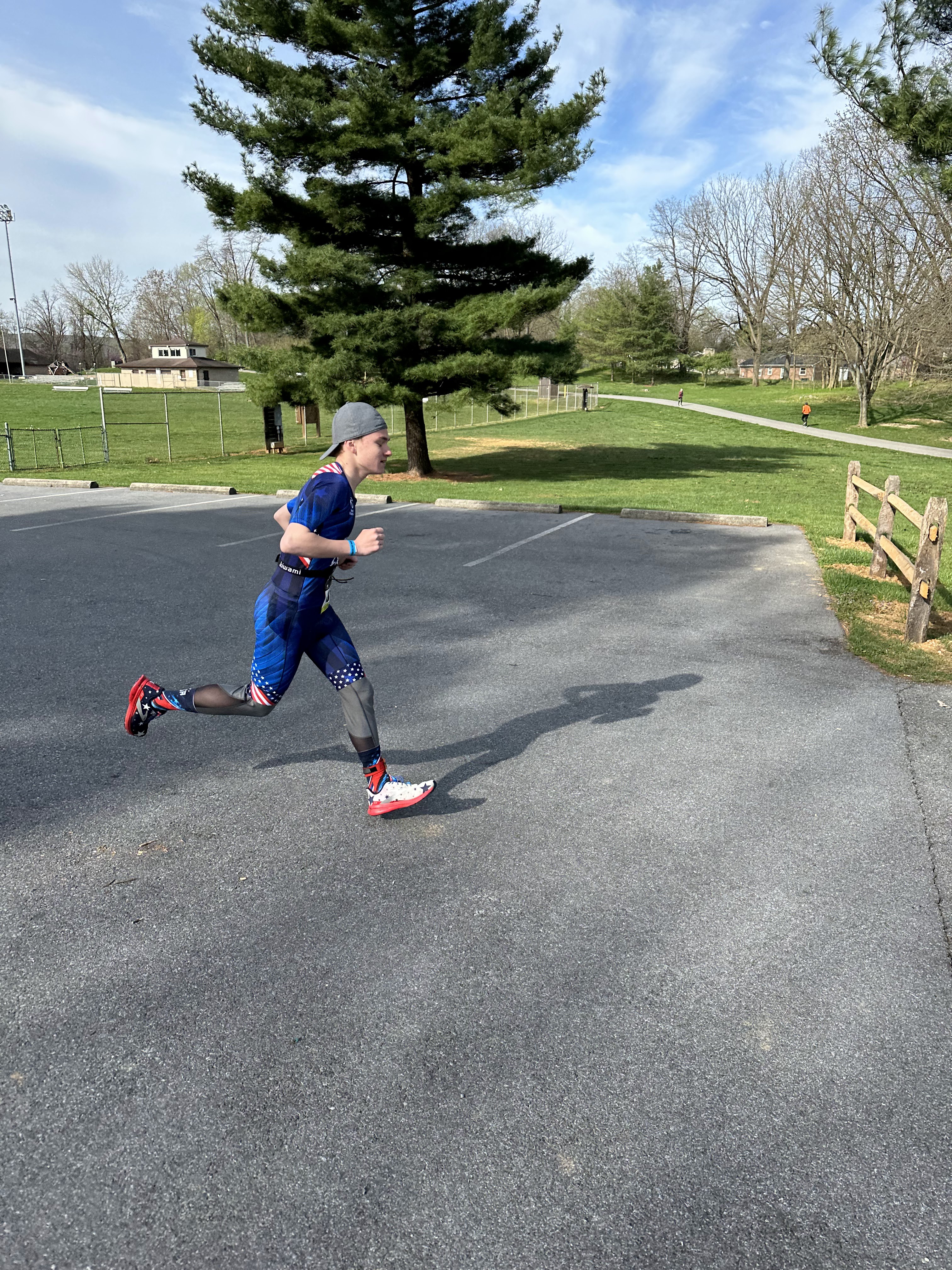Practice with some hiccups! While Gavin and Brody work toward training for the world championship races, race training is crucial! One of those crucial pieces is transition practice. Executing a seamless transition while adrenaline is pumping contributes to desired race results. We committed to this race five months prior. Unfortunately, we learned two days before the race that the bike course was reduced to 1.8 miles due to road construction. Hotels had been reserved; tickets for a hockey game had been purchased. Although we were disappointed, we knew the primary benefit of this race was kit comfort and race-day transition.